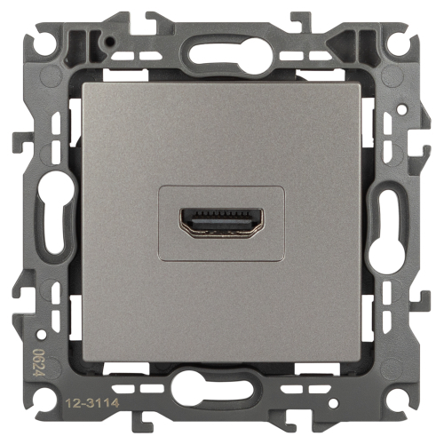 Розетка HDMI серии Эра 12 скрытой установки механизм цвет титан 12-3114-16. Сделана из поликарбоната. Монтаж в подрозетник производится и на лапки, и на винты. Рамки приобретаются отдельно.