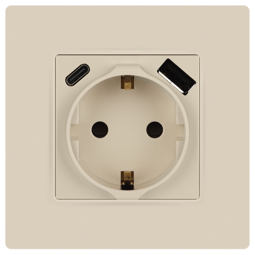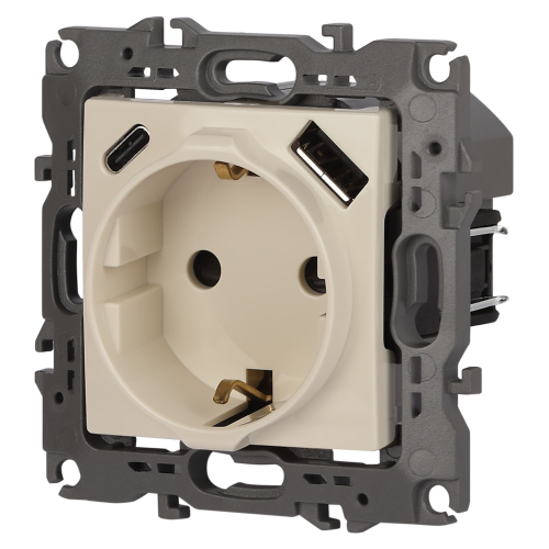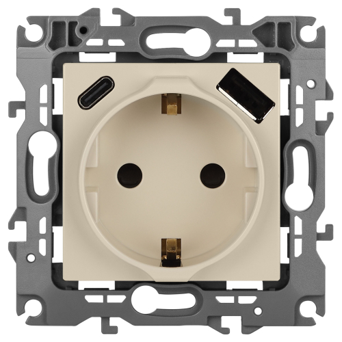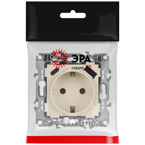 Розетка с USB A+C серии Эра12 12-4108-02 цвет слоновая кость. Номинальные характеристики: розетка силовая – 16А 250В. Розетка USB type A – 3A 5В. Розетка USB type C – 3A 5В. Рамки приобретаются отдельно
