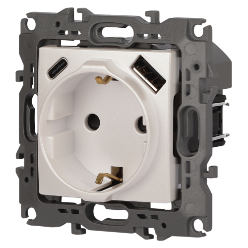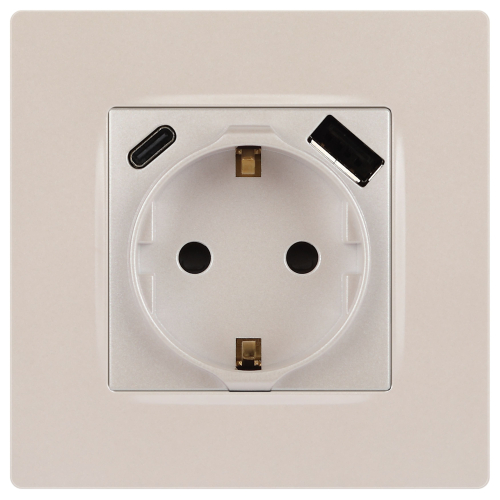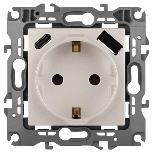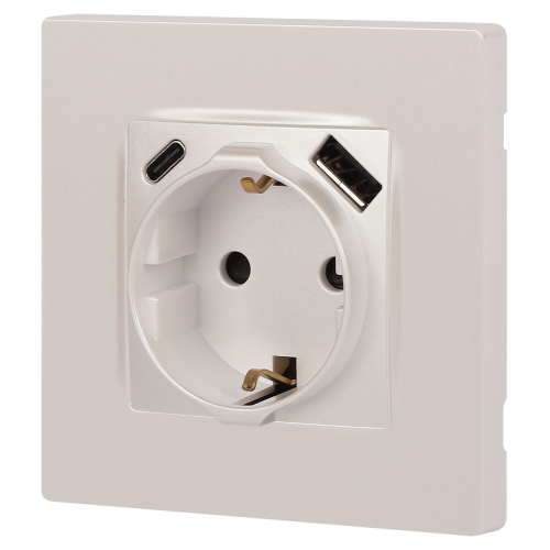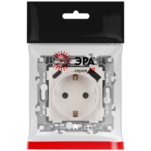 Розетка с USB A+C серии Эра12 12-4108-15 цвет перламутр. Номинальные характеристики: розетка силовая – 16А 250В. Розетка USB type A – 3A 5В. Розетка USB type C – 3A 5В. Рамки приобретаются отдельно