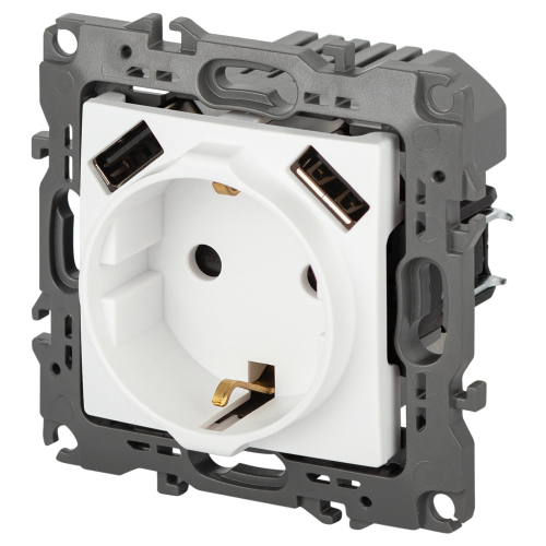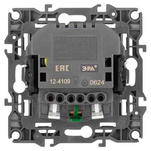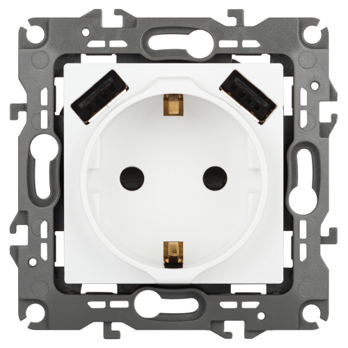 Розетка с заземлением с USB со шторками серии Эра 12 скрытой установки механизм цвет белый матовый 12-4109-01М. Номинальные характеристики 16А 250В/3А-5В. Сделана из поликарбоната. Монтаж в подрозетник производится и на лапки, и на винты. Рамки приобретаются отдельно.