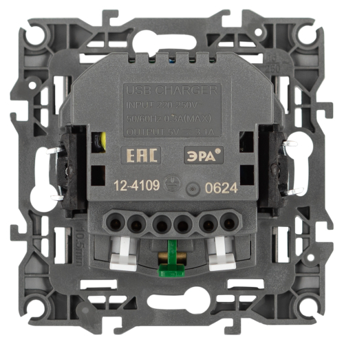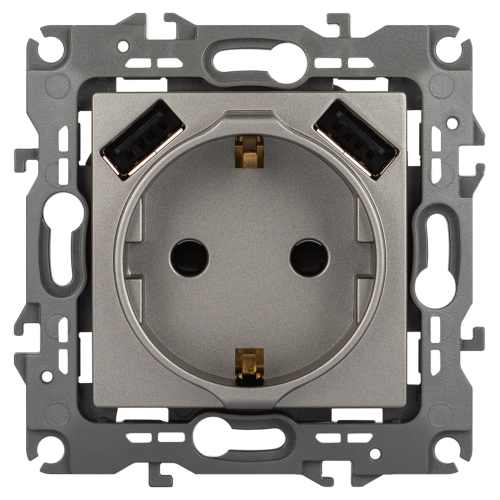 Розетка с заземлением с USB со шторками серии Эра 12 скрытой установки механизм цвет титан 12-4109-16. Номинальные характеристики 16А 250В/3А-5В. Сделана из поликарбоната. Монтаж в подрозетник производится и на лапки, и на винты. Рамки приобретаются отдельно.