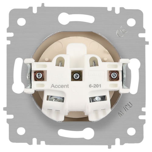 Розетка без заземления серии Intro Accent скрытой установки механизм цвет шампань 6-201-04. Номинальные характеристики 16А 250В. Выполнена из негорючего термопласта, подходит для медной и алюминиевой проводки, оснащена винтовыми клеммами. Парные клеммы обеспечивают соединение шлейфом. Монтаж в подрозетник производится и на лапки, и на винты. Рамка приобретается отдельно. В серии представлены рамки до 5 постов: на 1 пост - 6-501-хх, на 2 поста - 6-502-хх, на 3 поста - 6-503-хх, на 6 поста - 4-504-хх, на 5 постов - 6-505-хх (где хх - цветовой код: 01 - белый, 01М - матовый белый, 02 - слоновая кость, 03 - алюминий, 04 - шампань, 05 - антрацит, 06 - перламутр, 07 - графит, 08 - бронза, 09 - титан, 10 - венге, 11 - сосна)
