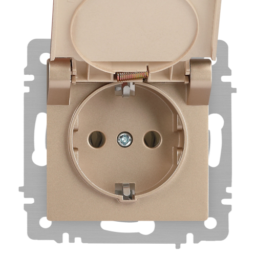Розетка с заземлением с крышкой серии Intro Accent скрытой установки механизм цвет шампань 6-203-04. Номинальные характеристики 16А 250В. Выполнена из негорючего термопласта, подходит для медной и алюминиевой проводки, подходит для медной и алюминиевой проводки, оснащена винтовыми клеммами. Парные клеммы обеспечивают соединение шлейфом. Монтаж в подрозетник производится и на лапки, и на винты. Рамка приобретается отдельно. В серии представлены рамки до 5 постов: на 1 пост - 6-501-хх, на 2 поста - 6-502-хх, на 3 поста - 6-503-хх, на 6 поста - 4-504-хх, на 5 постов - 6-505-хх (где хх - цветовой код: 01 - белый, 01М - матовый белый, 02 - слоновая кость, 03 - алюминий, 04 - шампань, 05 - антрацит, 06 - перламутр, 07 - графит, 08 - бронза, 09 - титан, 10 - венге, 11 - сосна)