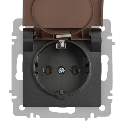 Розетка с заземлением с крышкой серии Intro Accent скрытой установки механизм цвет графит 6-203-07. Номинальные характеристики 16А 250В. Выполнена из негорючего термопласта, оснащена винтовыми клеммами. Парные клеммы обеспечивают соединение шлейфом. Монтаж в подрозетник производится и на лапки, и на винты. Рамка приобретается отдельно. В серии представлены рамки до 5 постов: на 1 пост - 6-501-хх, на 2 поста - 6-502-хх, на 3 поста - 6-503-хх, на 6 поста - 4-504-хх, на 5 постов - 6-505-хх (где хх - цветовой код: 01 - белый, 01М - матовый белый, 02 - слоновая кость, 03 - алюминий, 04 - шампань, 05 - антрацит, 06 - перламутр, 07 - графит, 08 - бронза, 09 - титан, 10 - венге, 11 - сосна)