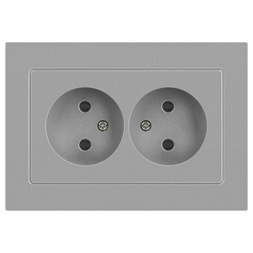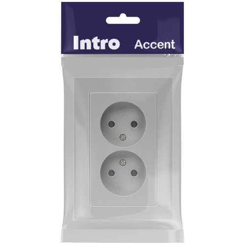 Розетка двойная без заземления серии Intro Accent скрытой установки цвет алюминий 6-204-03. Номинальные характеристики 16А 250В. Выполнена из негорючего термопласта, оснащена винтовыми клеммами. Парные клеммы обеспечивают соединение шлейфом. Монтаж в подрозетник производится и на лапки, и на винты.