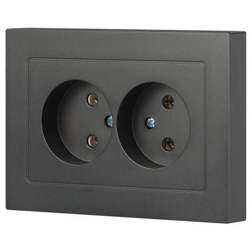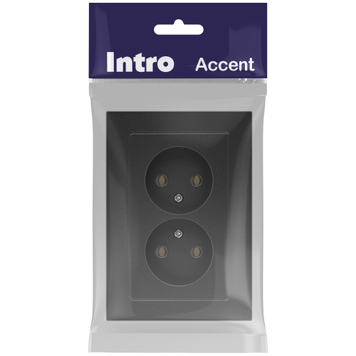 Розетка двойная без заземления серии Intro Accent скрытой установки цвет графит 6-204-07. Номинальные характеристики 16А 250В. Выполнена из негорючего термопласта, оснащена винтовыми клеммами. Парные клеммы обеспечивают соединение шлейфом. Монтаж в подрозетник производится и на лапки, и на винты.