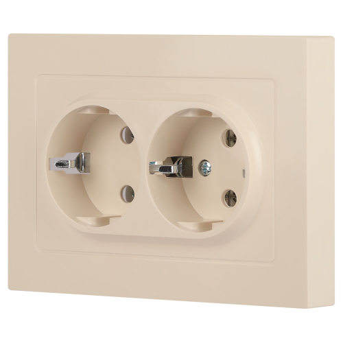 Розетка двойная с заземлением серии Intro Accent скрытой установки цвет слоновая кость 6-205-02. Номинальные характеристики 16А 250В. Выполнена из негорючего термопласта, оснащена винтовыми клеммами. Парные клеммы обеспечивают соединение шлейфом. Монтаж в подрозетник производится и на лапки, и на винты.