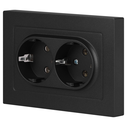 Розетка двойная с заземлением серии Intro Accent скрытой установки цвет антрацит 6-205-05. Номинальные характеристики 16А 250В. Выполнена из негорючего термопласта, оснащена винтовыми клеммами. Парные клеммы обеспечивают соединение шлейфом. Монтаж в подрозетник производится и на лапки, и на винты.