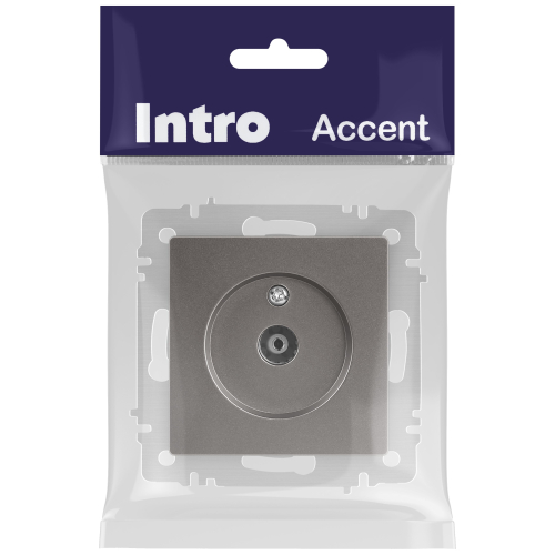Розетка телевизионная серии Intro Accent скрытой установки механизм цвет титан 6-301-09. Выполнена из негорючего термопласта. Монтаж в подрозетник производится и на лапки, и на винты. Рамка приобретается отдельно. В серии представлены рамки до 5 постов: на 1 пост - 6-501-хх, на 2 поста - 6-502-хх, на 3 поста - 6-503-хх, на 6 поста - 4-504-хх, на 5 постов - 6-505-хх (где хх - цветовой код: 01 - белый, 01М - матовый белый, 02 - слоновая кость, 03 - алюминий, 04 - шампань, 05 - антрацит, 06 - перламутр, 07 - графит, 08 - бронза, 09 - титан, 10 - венге, 11 - сосна)