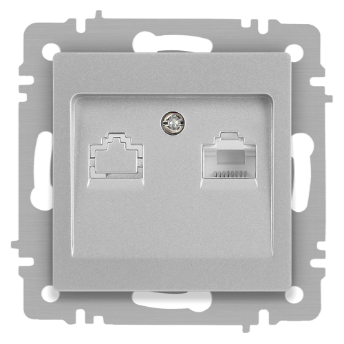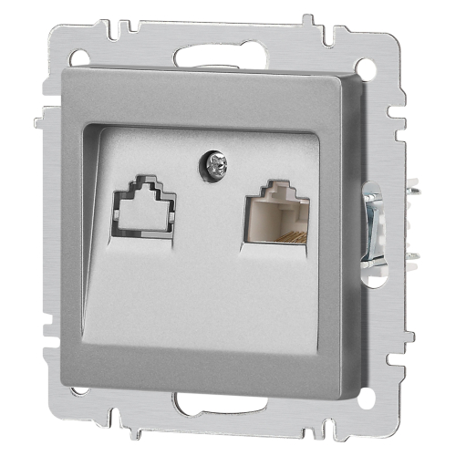 Розетка информационная серии Intro Accent скрытой установки механизм цвет алюминий 6-303-03. Выполнена из негорючего термопласта. Монтаж в подрозетник производится и на лапки, и на винты. Рамка приобретается отдельно. В серии представлены рамки до 5 постов: на 1 пост - 6-501-хх, на 2 поста - 6-502-хх, на 3 поста - 6-503-хх, на 6 поста - 4-504-хх, на 5 постов - 6-505-хх (где хх - цветовой код: 01 - белый, 01М - матовый белый, 02 - слоновая кость, 03 - алюминий, 04 - шампань, 05 - антрацит, 06 - перламутр, 07 - графит, 08 - бронза, 09 - титан, 10 - венге, 11 - сосна)