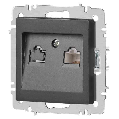 Розетка информационная серии Intro Accent скрытой установки механизм цвет графит 6-303-07. Выполнена из негорючего термопласта. Монтаж в подрозетник производится и на лапки, и на винты. Рамка приобретается отдельно. В серии представлены рамки до 5 постов: на 1 пост - 6-501-хх, на 2 поста - 6-502-хх, на 3 поста - 6-503-хх, на 6 поста - 4-504-хх, на 5 постов - 6-505-хх (где хх - цветовой код: 01 - белый, 01М - матовый белый, 02 - слоновая кость, 03 - алюминий, 04 - шампань, 05 - антрацит, 06 - перламутр, 07 - графит, 08 - бронза, 09 - титан, 10 - венге, 11 - сосна)