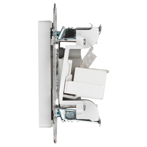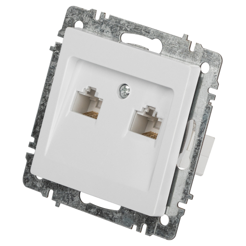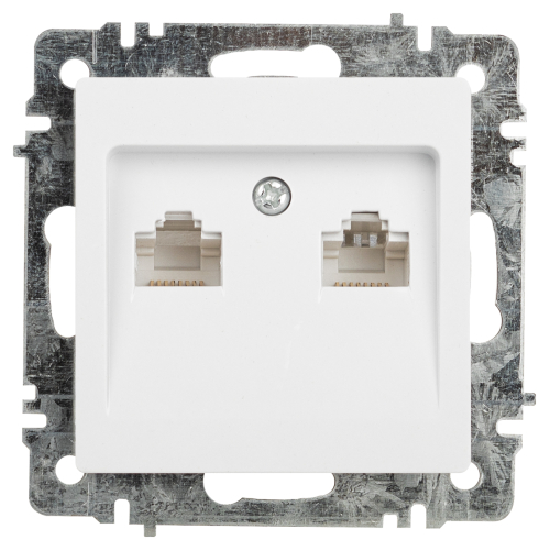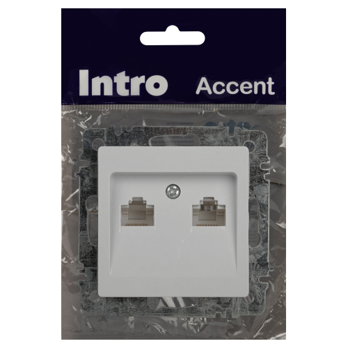 Розетка информационная двойная серии Intro Accent скрытой установки механизм цвет белый 6-304-01. Выполнена из негорючего термопласта. Монтаж в подрозетник производится и на лапки, и на винты. Рамка приобретается отдельно. В серии представлены рамки до 5 постов: на 1 пост - 6-501-хх, на 2 поста - 6-502-хх, на 3 поста - 6-503-хх, на 6 поста - 4-504-хх, на 5 постов - 6-505-хх (где хх - цветовой код: 01 - белый, 01М - матовый белый, 02 - слоновая кость, 03 - алюминий, 04 - шампань, 05 - антрацит, 06 - перламутр, 07 - графит, 08 - бронза, 09 - титан, 10 - венге, 11 - сосна)