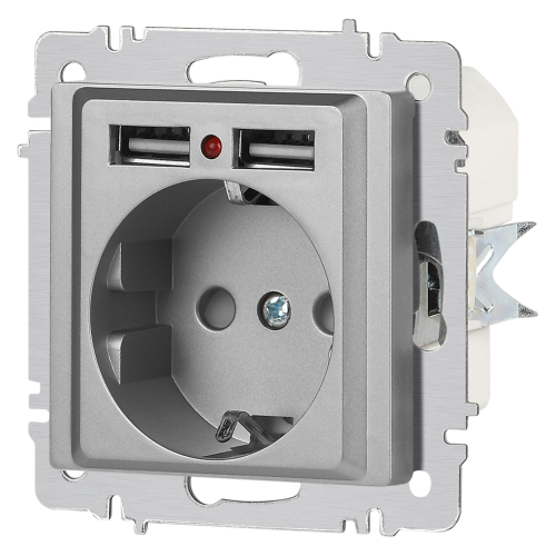 Розетка с USB с заземлением со шторками серии Intro Accent скрытой установки механизм цвет алюминий 6-410-03. Номинальные характеристики 16А 250В / 2,1А 5В. Выполнена из негорючего термопласта. Монтаж в подрозетник производится и на лапки, и на винты. Рамка приобретается отдельно. В серии представлены рамки до 5 постов: на 1 пост - 6-501-хх, на 2 поста - 6-502-хх, на 3 поста - 6-503-хх, на 6 поста - 4-504-хх, на 5 постов - 6-505-хх (где хх - цветовой код: 01 - белый, 01М - матовый белый, 02 - слоновая кость, 03 - алюминий, 04 - шампань, 05 - антрацит, 06 - перламутр, 07 - графит, 08 - бронза, 09 - титан, 10 - венге, 11 - сосна)