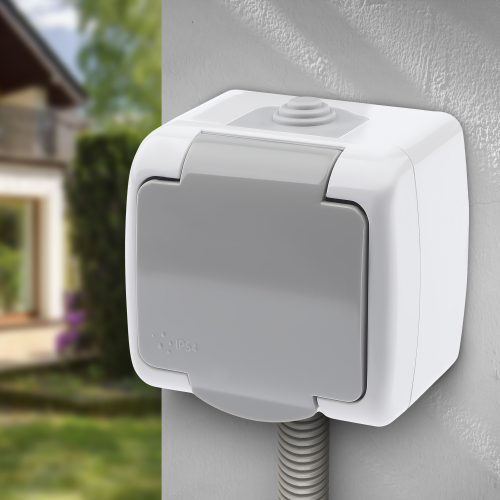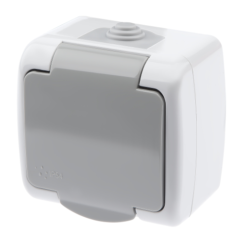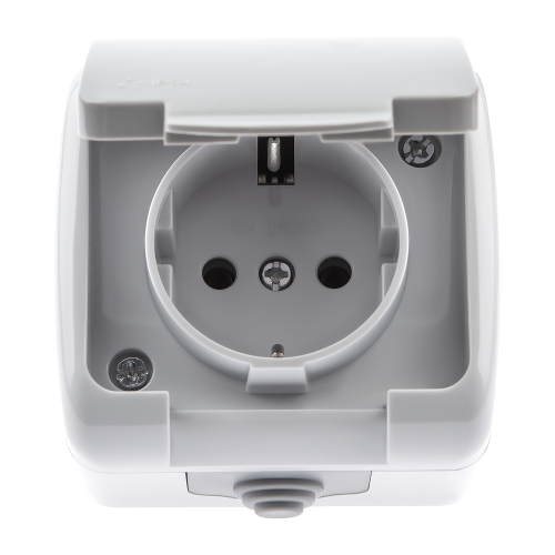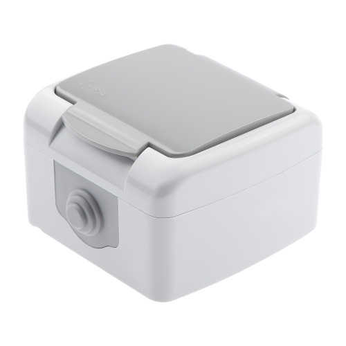 Розетка 2P+E Schuko, 16А-250В, IP54, ОУ, Atlantic, серый