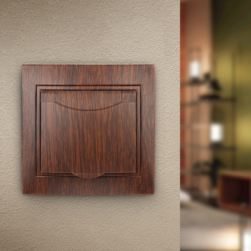 Розетка с крышкой со шторками серии Intro Plano скрытой установки цвет венге 1-203-10. Номинальные характеристики 16А 250В. Розетка выполнена из керамики, укомплектована одноместной рамкой, оснащена винтовыми клеммами. Клеммы с двумя отверстиями позволяют соединять соседние розетки шлейфом. Установка в подрозетник производится как на монтажные лапки, так и на винты. Для установки 2-х и более устройств в несколько подрозетников в ряд дополнительно используются многоместные рамки: 2-х постовая - 1-502-хх, 3-х постовая 1-503-хх, 4-х постовая - 1-504-хх (где хх - цветовой код: 01 - белый, 02 - слоновая кость, 03 - алюминий, 04 - шампань, 05 - антрацит, 10 - венге, 11 - сосна).