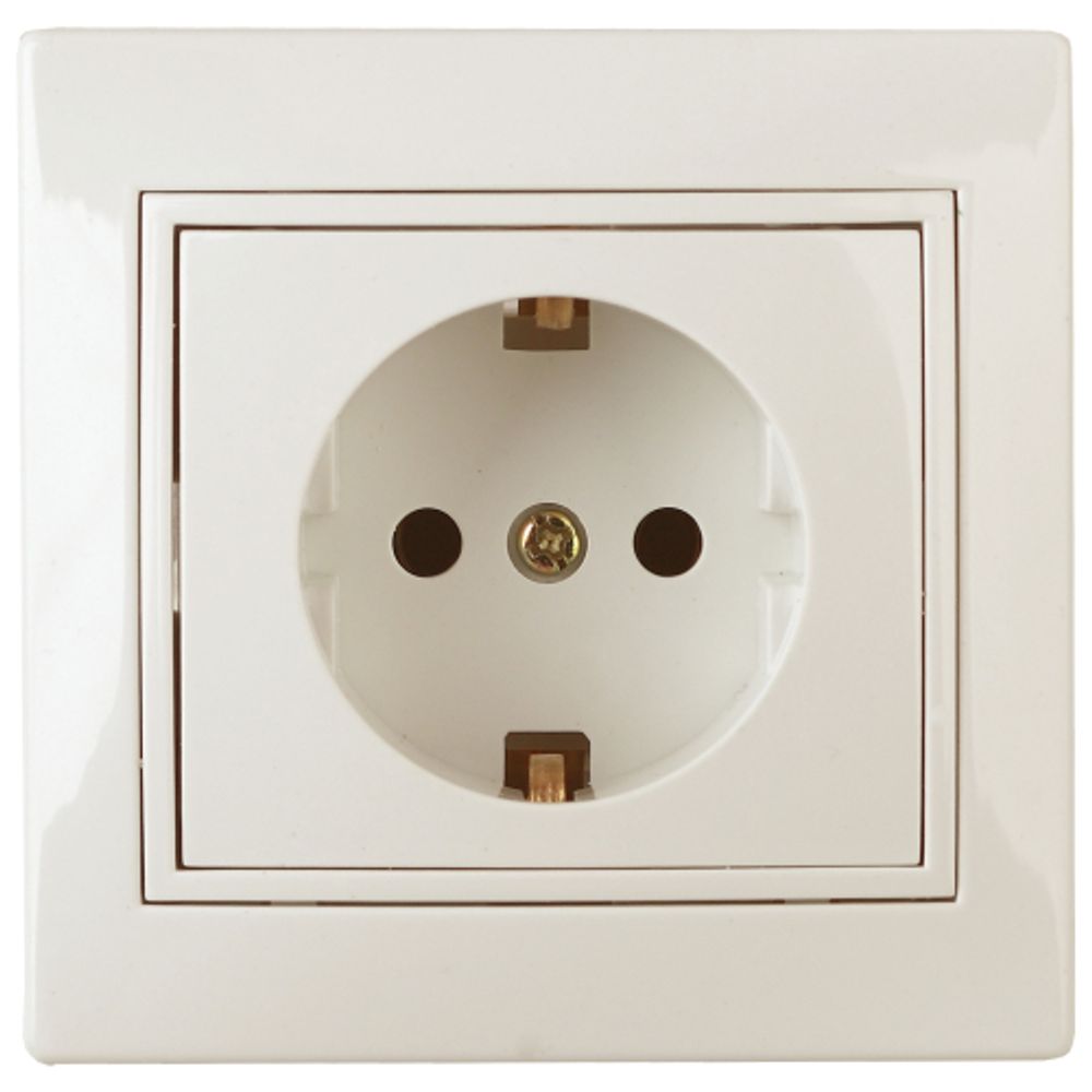 Розетка с заземлением 2P+E Schuko со шторками, 16А-250В, IP20, СУ, слоновая кость Intro Plano 1-206-02