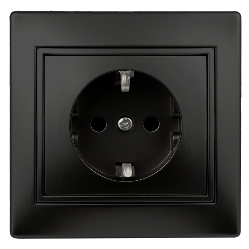 Розетка с заземлением 2P+E Schuko со шторками, 16А-250В, IP20, СУ, антрацит Intro Plano 1-206-05