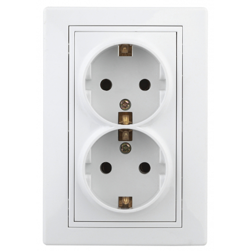 Розетка с заземлением двойная 2X2P+E Schuko со шторками, 16А-250В, IP20, СУ, белый Intro Plano 1-208-01