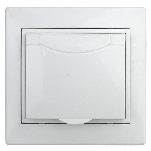 Розетка 2P+E Schuko с крышкой штор., 16А-250В, IP20, СУ, IP44, Plano, белый