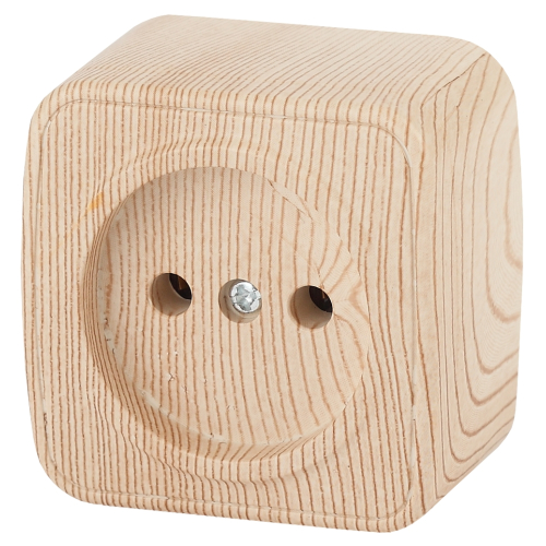 Розетка серии Intro Polo открытой установки 3-201-11, без заземления 2P, 16A-250В, IP20, ОУ, цвет сосна. Розетка выполнена из термопласта, керамики, стали и латуни, оснащена винтовыми зажимами