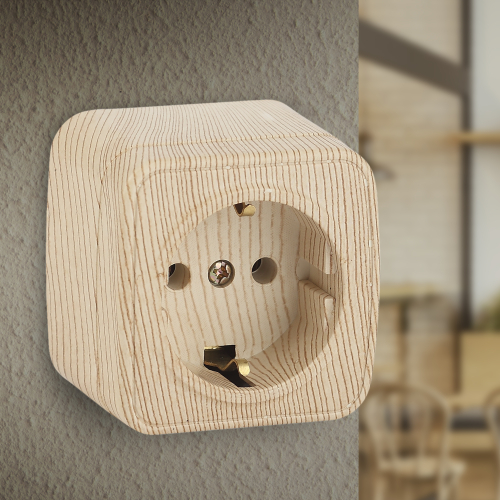Розетка серии Intro Polo открытой установки цвет сосна 3-202-11. Номинальные характеристики 16А 250В. Розетка выполнена из термопласта, керамики, стали и латуни, оснащёна винтовыми зажимами.