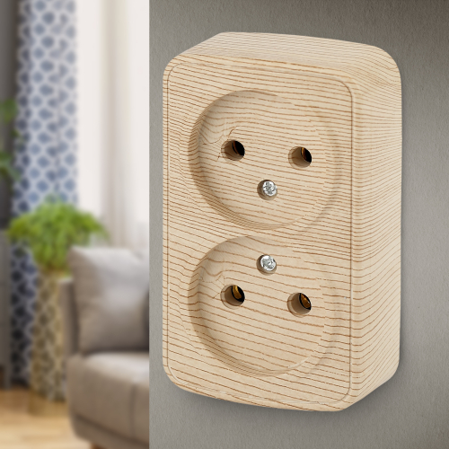 Розетка Intro Polo 3-203-11 двойная без заземления 2х2P, 16A-250В, IP20, ОУ, сосна