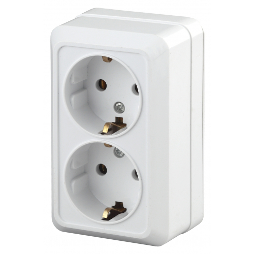 Розетка Intro Quadro 2-204-01 с заземлением двойная 2х2P+E Schuko, 16А-250В, IP20, ОУ, белый