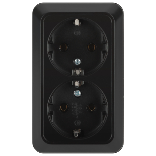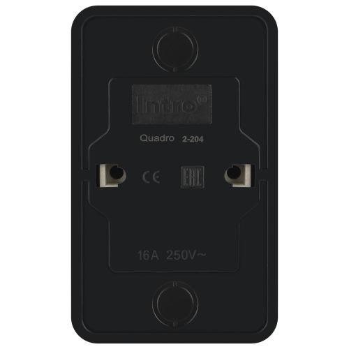 Розетка двойная с заземлением серии Intro Quadro открытой установки цвет антрацит 2-204-05. Номинальные характеристики 16А 250В. Розетка выполнена из керамики, стали и латуни, оснащёна винтовыми зажимами.