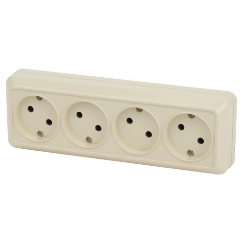 Розетка четырехместная Intro серии Quadro 2-207-02 без заземления 4х2P, открытой установки, цвет слоновая кость;номинальные характеристики: 16А-250В, IP20; выполнена из негорючего термопласта, оснащена винтовыми зажимами и клеммами.