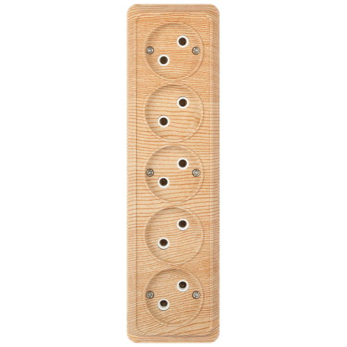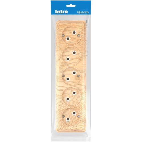 Розетка пятиместная без заземления серии Intro Quadro открытой установки цвет сосна 2-209-11. Номинальные характеристики 16А 250В. Выполнена из негорючего термопласта, оснащена винтовыми зажимами