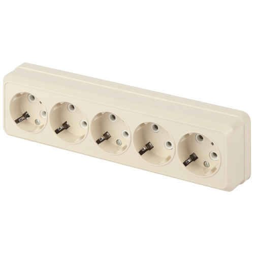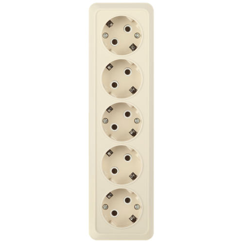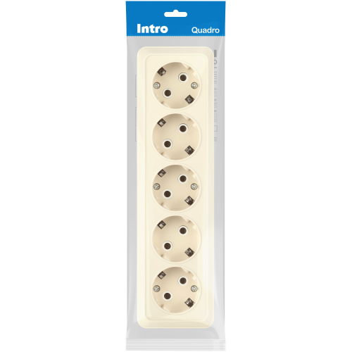 Розетка пятиместная с заземлением серии Intro Quadro открытой установки цвет слоновая кость 2-210-02. Номинальные характеристики 16А 250В. Выполнена из негорючего термопласта, оснащена винтовыми зажимами.