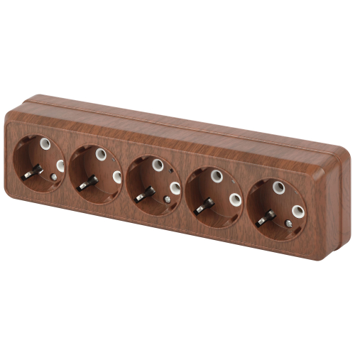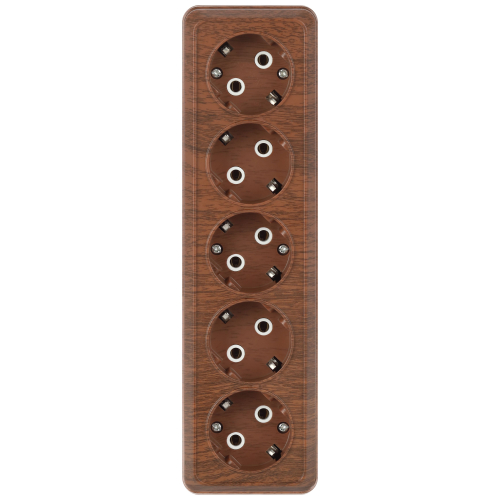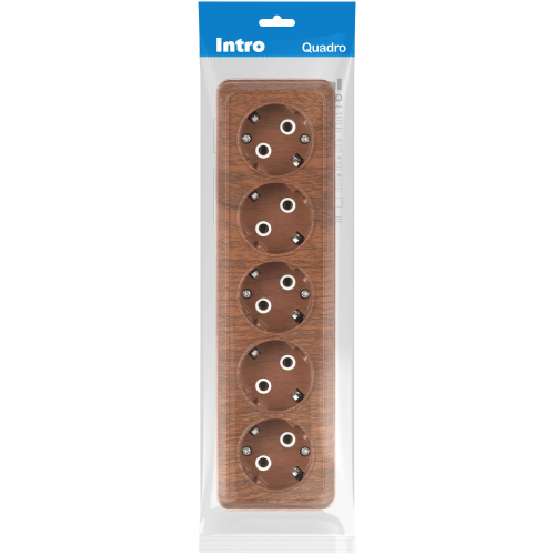 Розетка пятиместная с заземлением серии Intro Quadro открытой установки цвет венге 2-210-10. Номинальные характеристики 16А 250В. Выполнена из негорючего термопласта, оснащена винтовыми зажимами.