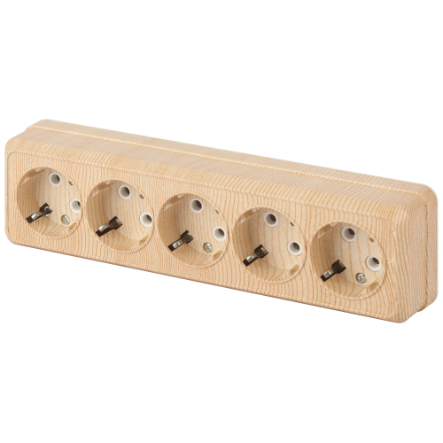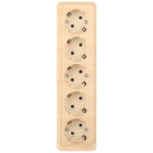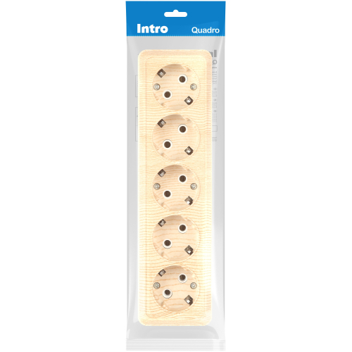 Розетка пятиместная с заземлением серии Intro Quadro открытой установки цвет сосна 2-210-11. Номинальные характеристики 16А 250В. Выполнена из негорючего термопласта, оснащена винтовыми зажимами.