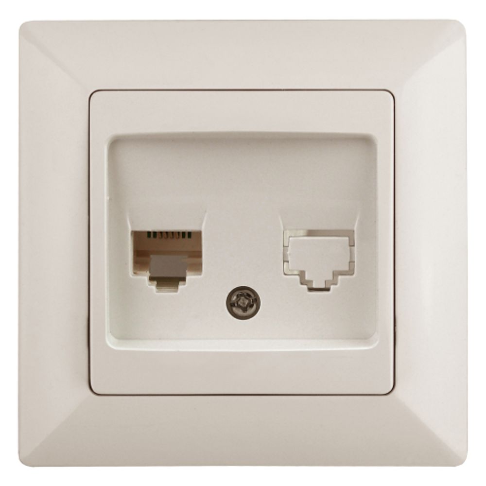 Розетка RJ45 серии Intro Solo скрытой установки цвет слоновая кость 4-303-02. Розетка выполнена из термопласта, укомплектована одноместной рамкой. Для установки 2-х и более устройств в несколько подрозетников в ряд дополнительно используются многоместные рамки: 2-х постовая - 4-502-хх, 3-х постовая 4-503-хх, 4-х постовая - 4-504-хх (где хх - цветовой код: 01 - белый, 02 - слоновая кость, 03 - алюминий, 04 - шампань, 05 - антрацит, 10 - венге, 11 - сосна).