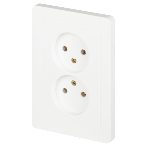 Розетка двойная без заземления серии Intro ST скрытой установки цвет белый 7-204-01. Номинальные характеристики 16А 250В. Розетка выполнена из термопластика, укомплектована одноместной рамкой, оснащена винтовыми клеммами. Клеммы с двумя отверстиями позволяют соединять соседние розетки шлейфом. Установка в подрозетник производится как на монтажные лапки, так и на винты.