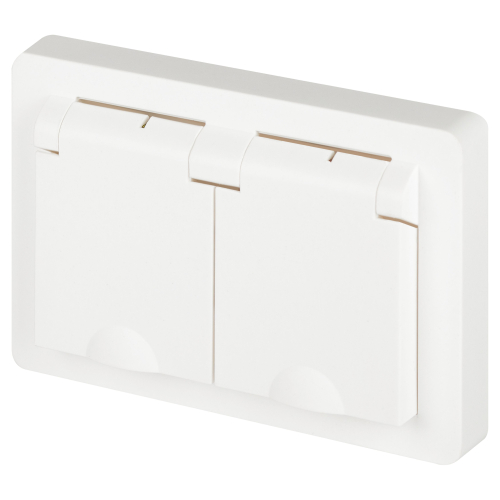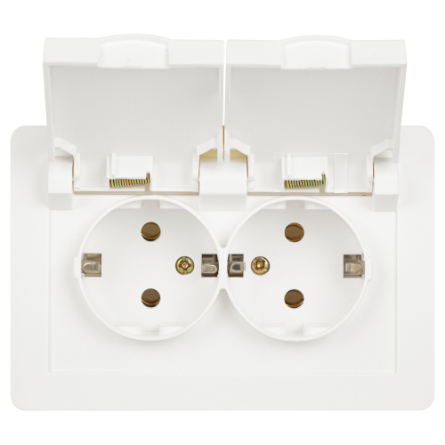 Розетка двойная со шторками с крышкой IP44 серии Intro Style скрытой установки цвет белый 7-210-01. Номинальные характеристики 16А 250В . Розетка выполнена из термопластика, укомплектована одноместной рамкой, оснащена винтовыми клеммами. Клеммы с двумя отверстиями позволяют соединять соседние розетки шлейфом. Установка в подрозетник производится как на монтажные лапки, так и на винты.