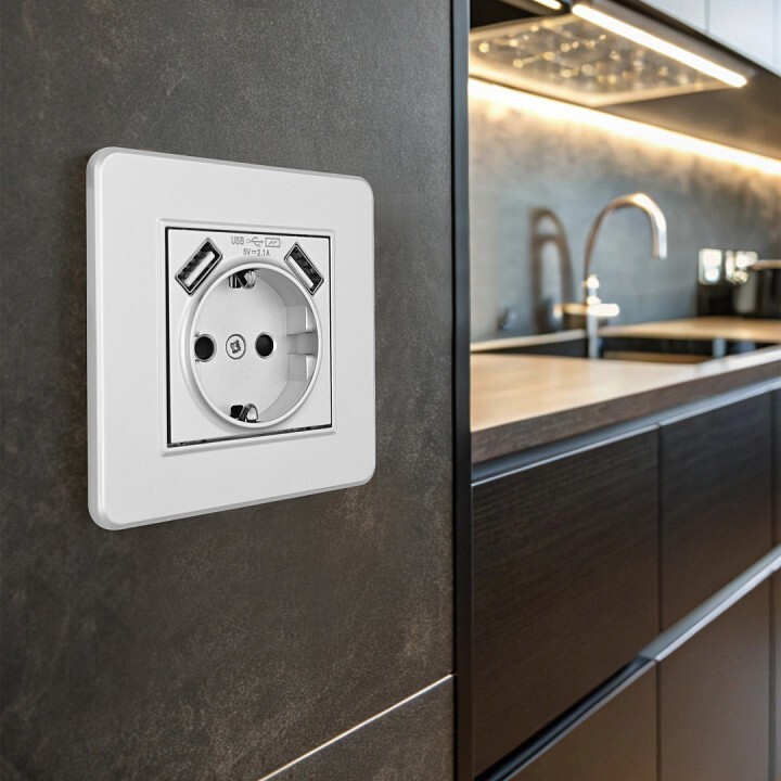 Сопутствующие товары,Розетки с заземлением и со шторками и 2хUSB