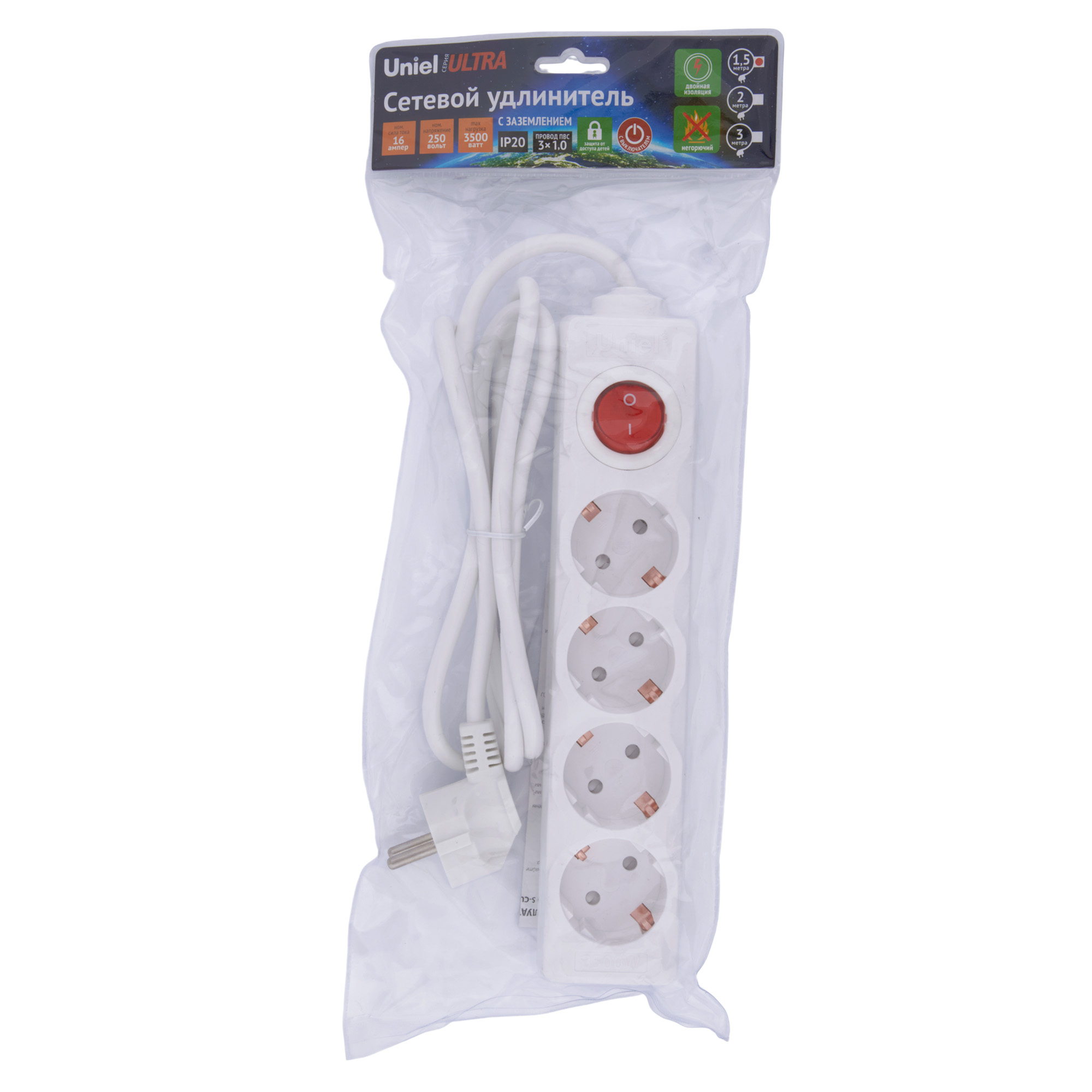 Удлинитель S-GCU4-1,5B WHITE серии Ultra предназначен для подключения электрических приборов в быту. Отличительными особенностями удлинителя являются заземление, негорючий ударопрочный корпус, эргономичная вилка, двойная изоляция провода, защита от доступа детей и выключатель на корпусе. Максимальная нагрузка - 3500 Вт. Количество гнезд - 4 шт. Материал изоляции кабеля - ПВХ. Степень пылевлагозащиты - IP 20. Корпус удлинителя изготовлен из пластика, цвет корпуса - белый. Удобный выключатель расположен на корпусе. Длина кабеля - 1,5 м. Удлинитель - незаменимый помощник в любом доме. Размер упаковки - ДхШхВ 45х160х400 мм. Общий вес комплекта - 357 г. Гарантия - 1 год. Срок службы - 5 лет.