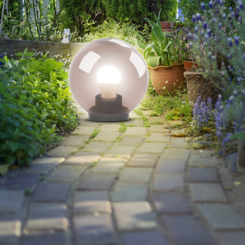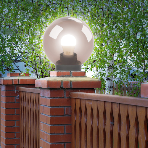 Светильник предназначен для декоративной подсветки садово-парковых зон, прогулочных дорожек, коттеджей, функционально-декоративного освещения скверов, парков и бульваров, а также для подсветки фасадов зданий, архитектурных памятников и различных строений. Дизайн с учетом европейских тенденций в освещении. Не подвержен коррозии, деформации под воздействием погодных условий. Подходит любая светодиодная лампа, имеющая габариты не более D118мм, H=«D шара»-30мм