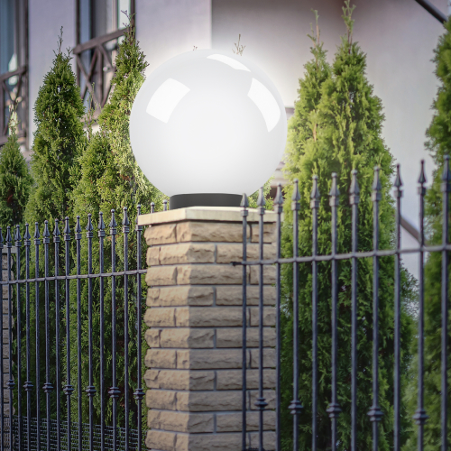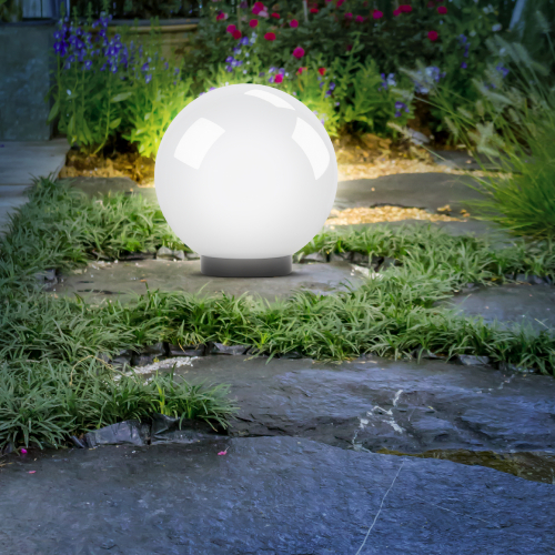 Светильник предназначен для декоративной подсветки садово-парковых зон, прогулочных дорожек, коттеджей, функционально- декоративного освещения скверов, парков и бульваров, а также для подсветки фасадов зданий, архитектурных памятников и различных строений. Дизайн с учетом европейских тенденций в освещении. Не подвержен коррозии, деформации под воздействием погодных условий. Подходит любая светодиодная лампа, имеющая габариты не более D118мм, H=«D шара»-30мм