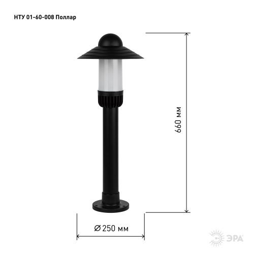 Уличный напольный светильник ЭРА под лампу с цоколем Е27 (60 Вт) - практичный и эстетичный вариант для оформления садово-парковых зон, прогулочных дорожек, придомовых территорий, фасадов.