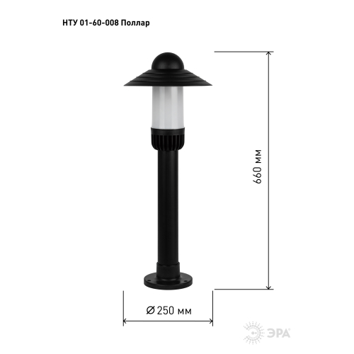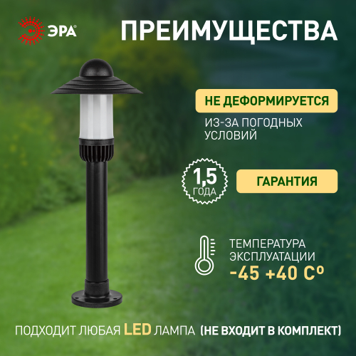 Уличный напольный светильник ЭРА под лампу с цоколем Е27 (60 Вт) - практичный и эстетичный вариант для оформления садово-парковых зон, прогулочных дорожек, придомовых территорий, фасадов.