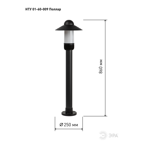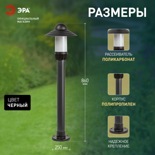 Уличный напольный светильник ЭРА под лампу с цоколем Е27 (60 Вт) - практичный и эстетичный вариант для оформления садово-парковых зон, прогулочных дорожек, придомовых территорий, фасадов.
