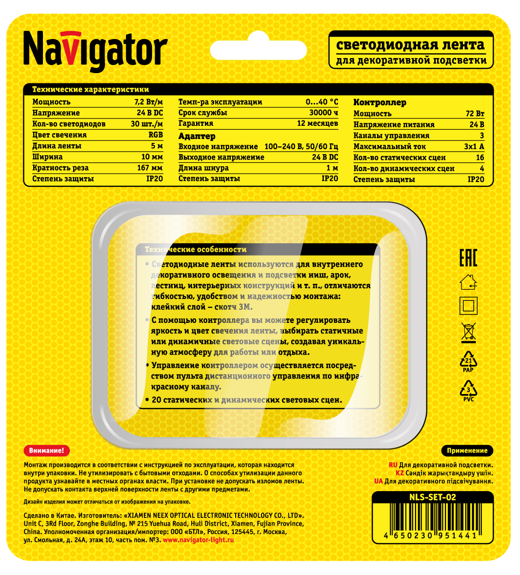 Светодиодные ленты и гирлянды > Светодиодная лента 24V > Набор светодиодной ленты RGB с контроллером NLS-SET 4