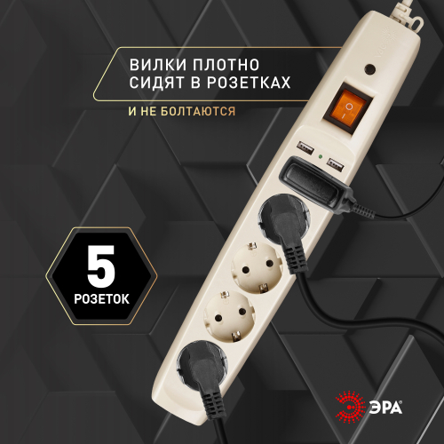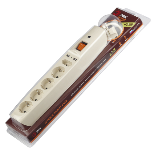Сетевой фильтр ЭРА SFU-5es-2m-I незаменимый атрибут жителя современного мегаполиса. Фильтр объединяет несколько функций, что особенно удобно в квартире. Сетевой фильтр используется как удлинитель (длина провода составляет 2м). Сетевой фильтр имеет 5 розеток: 4 стандартных гнезда и одно для зарядных устройств. На корпусе также расположены 2 USB-порта напряжением 2.1 А, что дает возможность быстрой зарядки мобильных устройств. Сетевой фильтр имеет надежную защиту, заземление и выключатель. Устройство предохраняет от перегрузки сети, короткого замыкания, импульсных и высокочастотных помех. Для дополнительного удобства на вилке расположено кольцо, позволяющее легко выдернуть удлинитель из розетки. Современный дизайн сетевого фильтра и его нейтральный цвет будет выгодно смотреться практически в любом интерьере. Сетевые фильтры ЭРА разрабатывается собственным техническим бюро, проходит проверку на всех этапах производства, что обеспечивает высокое качество продукта.