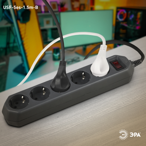 Сетевой фильтр ЭРА USF-5es-1.5m-B предназначен для безопасного подключения нескольких устройств. Он защищает от перегрузок сети, короткого замыкания, выполняет фильтрацию импульсных помех. Сетевой фильтр ЭРА имеет 5 розеток с заземлением. На корпусе расположен выключатель, который позволяет легко отключить одновременно несколько устройств. Он особенно удобен при подключении компьютерной техники, при этом длина провода 1.5 метра оптимальна при работе в пределах одной комнаты. Удлинитель снабжен удобной сетевой вилкой со специальным кольцом. Функциональность сетевого фильтра позволяет ему заменить сразу несколько устройств, при этом он имеет высокую степень защиты бытовых приборов. Это настоящий must have современного человека. Сетевые фильтры ЭРА разрабатываются собственным техническим бюро, проходят проверку на всех этапах производства, что обеспечивает высокое качество продукта.