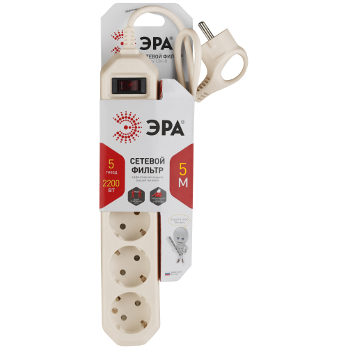 Сетевой фильтр ЭРА USF-5es-5m-I с базовой степенью защиты незаменим в современном доме. Он позволяет безопасно подключать технику, исключая воздействия на нее короткого замыкания, фильтруя импульсные помехи. Он идеально подходит для использования в небольших помещениях, длина его провода составляет 5 метров. Его мощность составляет 2200, что обеспечивает надежную бесперебойную работу всех подключенных устройств. Корпус сетевого фильтра имеет 5 розеток с заземлением и выключатель с подсветкой для быстрого обесточивания подключенных приборов. Сетевые фильтры ЭРА разрабатываются собственным техническим бюро, проходят проверку на всех этапах производства, что обеспечивает высокое качество продукта.