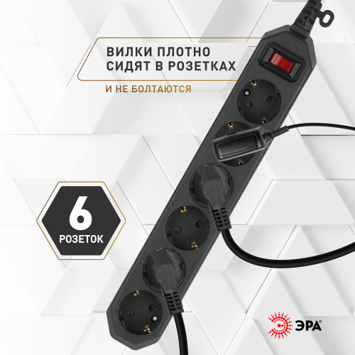 Сетевой фильтр ЭРА USF-6es-3m-B рассчитан на одновременное подключение большого количества техники. На корпусе расположены 6 розеток с заземлением. Отличительной особенностью модели выступает прочный корпус из негорючего полипропилена, надежный трехжильный провод, терморазмыкатель на 10А, который защищает приборы от перегрузки. На корпусе расположена кнопка выключения. Сетевой фильтр разработан собственными инженерами компании ЭРА, проходят проверку на всех этапах производства, гарантируя высокое качество его исполнения. Длина провода модели составляет 3 метра. Удлинитель удобно использовать в пределах одной комнаты. Сетевой фильтр имеет кольцо на шнуре, благодаря чему прибор можно быстро выдернуть из сети.