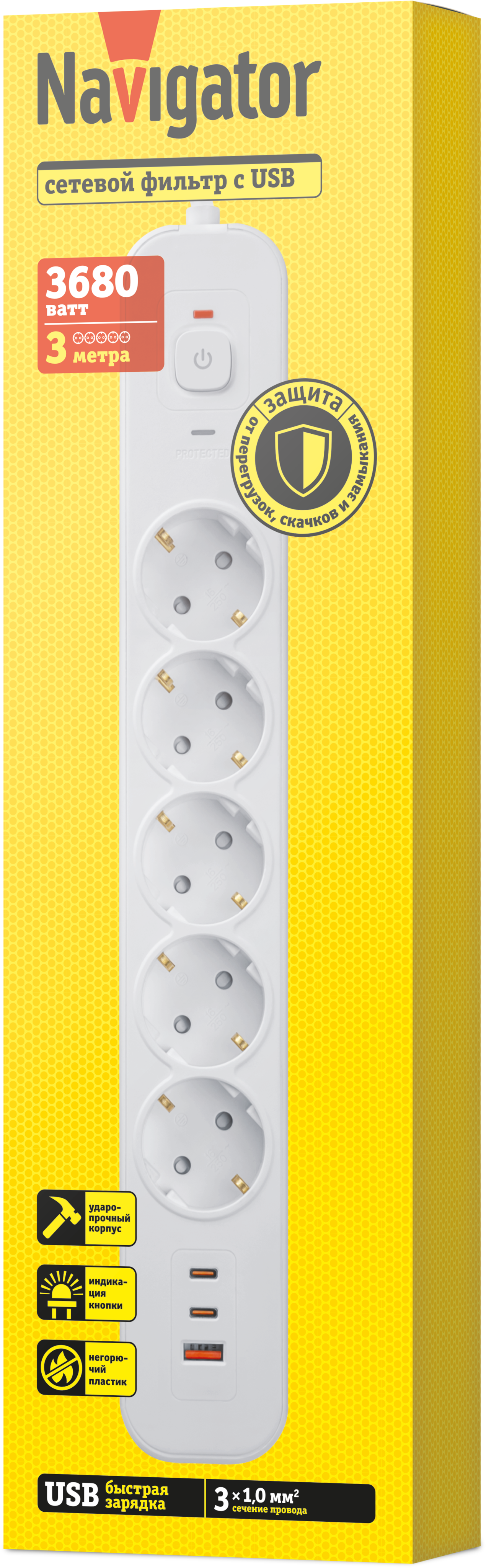 Электрические удлинители > Сетевые фильтры > NSP-USB05 3
