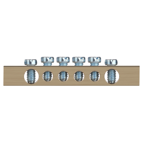 Шины латунные PEN "земля-ноль" применяются для электрического и механического соединения нулевых, защитных и фазных проводников в электрических щитах и распределительных устройствах. Изделия выполняются из латуни соответствующего сечения с отверстиями обладающими винтовыми зажимами для подключения проводников.